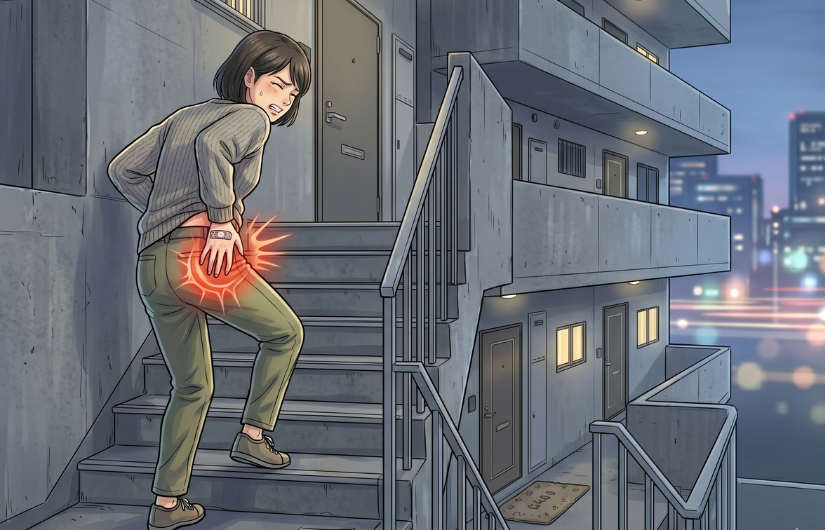 「股関節が痛い」と感じていても、実は腰が原因であることも少なくありません。腰椎椎間板ヘルニアや脊柱管狭窄症によって神経が圧迫されると、股関節やお尻、太ももにかけて痛みやしびれが広がることがあります。