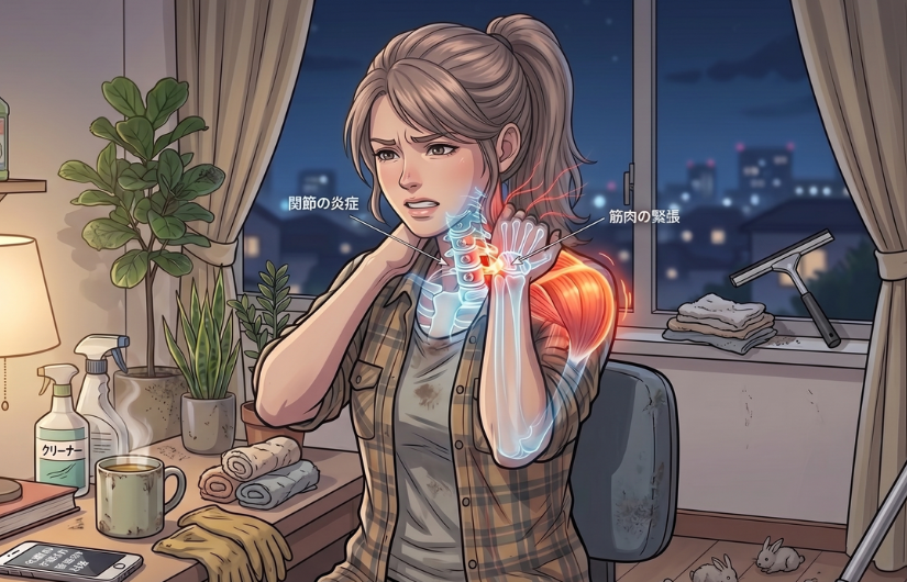 なぜ血流改善だけでは不十分なのでしょうか。医学的な観点からみると、緊張型頭痛の根本原因は筋肉そのものではなく、頸椎(首の骨)や肩甲骨周辺の関節の歪みや可動域の低下にあります。