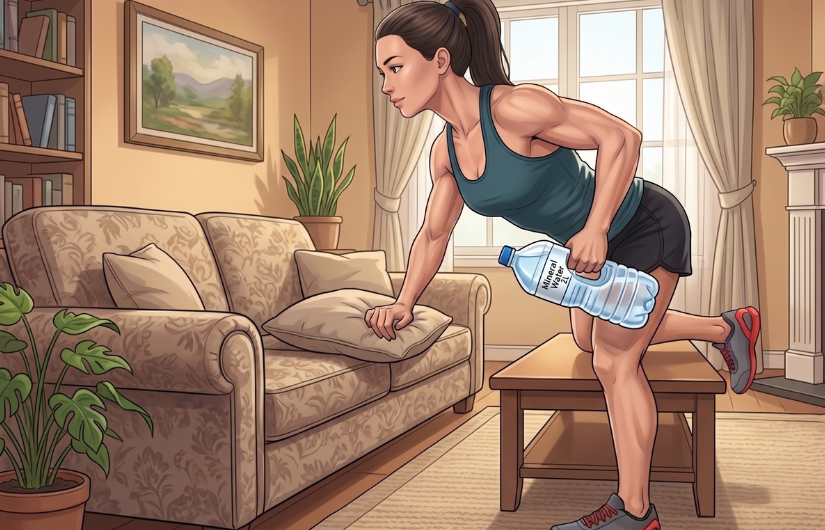 もう片方の手にペットボトルまたはダンベルを持つ