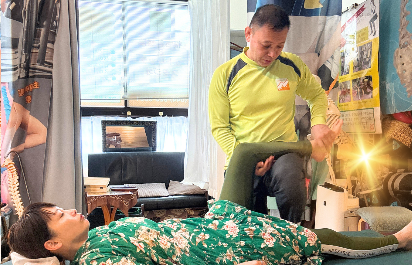 足の施術においては、28個の骨それぞれを丁寧に触れながら検査し、歪みや可動制限のある関節を特定。一つひとつ手で骨を掴み、位置と動きを確認しながらコンディショニングを行います。